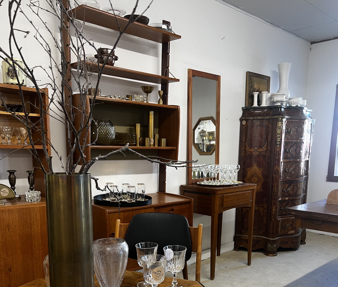 Her på Presthus gård har vi fylt opp det gamle fjøset med lopper og vintageskatter. Vi har mengder med klær, møbler, antikviteter, kunst og generelt ting og tang.